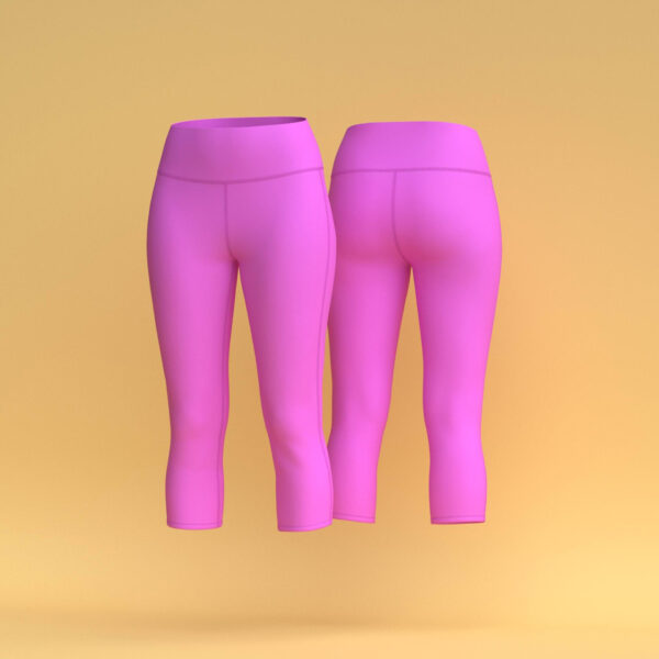 A digital 3D fashion CLO3D asset of women’s pink solid‑color activewear leggings for sportswear with high‑waist athlete fit.